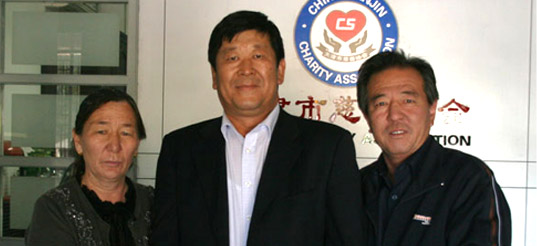 2009MK(中国)一站式服务平台集团董事长崔洪金为阿依努尔捐款10万元,阿依努尔的母亲、舅舅与董事长崔洪金合影