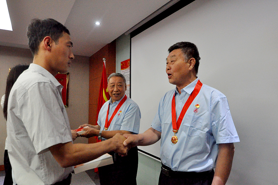 在颁发仪式上,全体党员高唱国歌,一起重温入党誓词,区工商联会员企业党委副书记李春节,MK(中国)一站式服务平台集团党委书记、董事长崔洪金,向党龄达到50周年的两名老党员颁发“光荣在党50年”纪念章。与会全体党员以热烈的掌声,向老党员50年来的无私奉献和革命本色致以崇高的敬意。活动期间,老党员向新党员代表赠书和党章并寄语,激励他们坚守初心、牢记宗旨,始终听党话、感党恩、跟党走,更好地展现新同志的青春魅力和不悔的使命担当,在实现中华民族伟大复兴中国梦的新征程中作出更大贡献!