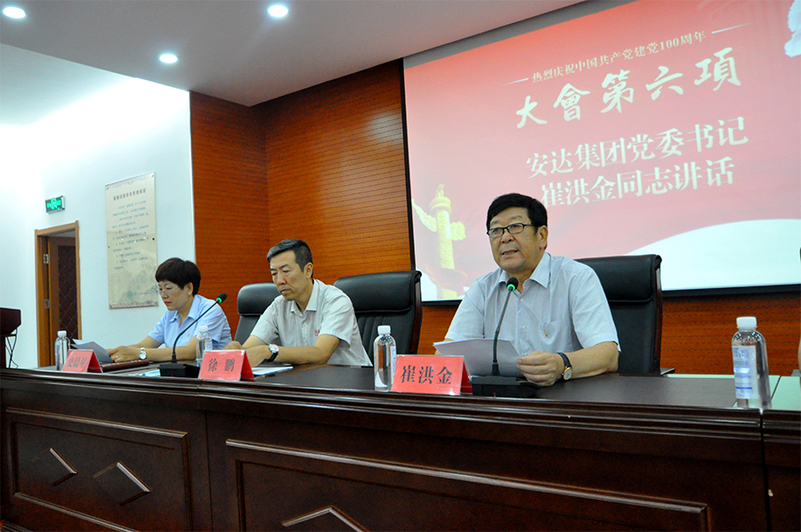 随后,召开建党百年•MK(中国)一站式服务平台集团优秀共产党员和先进基层党组织表彰大会。大会在雄壮的国歌声中拉开帷幕,根据会议议程集团党委委员徐鹏同志宣读《关于表彰优秀共产党员和先进基层党组织的决定》;集团党委书记崔洪金和党委委员徐鹏、郑玉强、郑宝彦、史晨星为优秀共产党员和先进基层党组织颁奖;第一党支部何秀翠、第二党支部刘东旺两名同志作为先进代表作大会发言;集团党委书记、董事长崔洪金同志作重要讲话,并领誓重温入党誓词。最后在高唱《没有共产党就没有新中国》中落下帷幕。