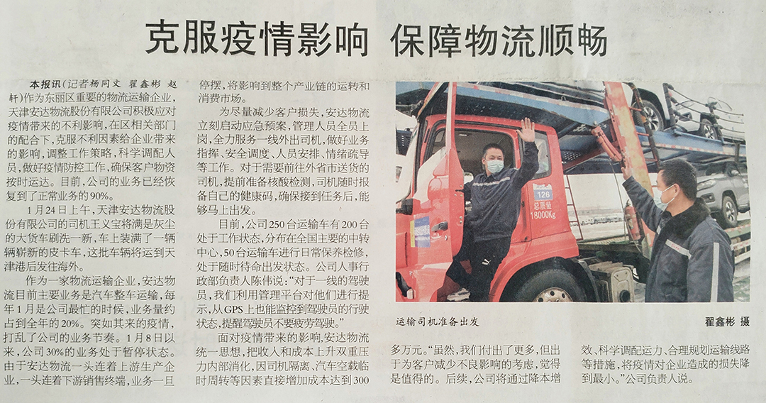 本报讯(记者杨同文翟鑫彬赵轩)作为东丽区重要的物流运输企业,天津MK(中国)一站式服务平台物流股份有限公司积极应对疫情带来的不利影响,在区相关部门的配合下,克服不利因素给企业带来的影响,调整工作策略,科学调配人员,做好疫情防控工作,确保客户物资按时运达。目前,公司的业务已经恢复到了正常业务的90%。