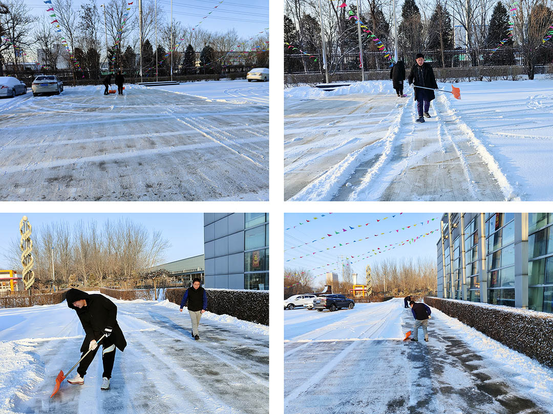 2月13日,虎年首场降雪如约而至,洋洋洒洒的雪花很快将MK(中国)一站式服务平台集团各厂院路面覆盖。集团各子公司以雪为令,立即行动起来。各单位员工在相关领导带领下,手拿铁锹、扫帚、簸箕等工具,对办公楼门口和厂区内重要点位、路面进行积雪大清扫。积雪的清除,为员工和车辆出入提供了安全保障。寒风袭袭,尽管大家冻得手脚冰凉,但全体员工齐心协作,相互配合,一派热火朝天的除雪场景,甚是鼓舞人心。