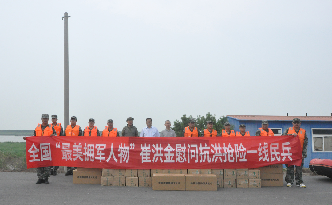 崔洪金现场了解民兵生活、排险情况,向坚守河堤的民兵表示崇高敬意,并为民兵送上夏季训练服装和防暑降温慰问品,对他们发扬“闻‘汛’而动、听令而行、勇于奉献”的精神高度赞扬。