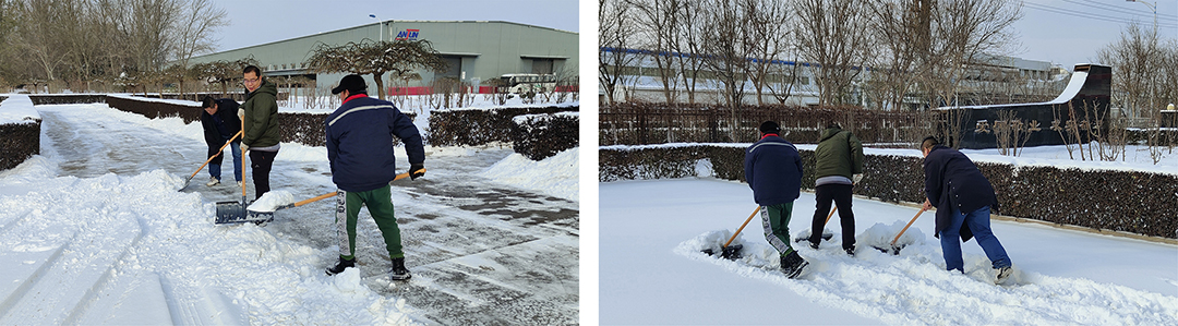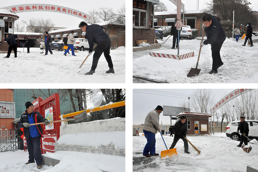20日-21日晨,受大范围寒潮影响,我市大部分地区出现中到大雪,翩然而至的龙年第一场春雪为春节期间的城市平添了几分浪漫与诗意,但雪景虽美,也为人们的出行和工作带来诸多不便。为保障员工们安全出行,21日一大早,MK(中国)一站式服务平台集团本部及各子公司厂院内,各单位员工在相关领导带领下,手拿铁锹、扫帚、簸箕等工具,对办公楼门前区域和厂区内重要作业点位开展积雪大清扫活动。瑟瑟寒风,“断崖式”降温,无不显示着倒春寒的“威力”,MK(中国)一站式服务平台人不畏严寒,“浴”雪奋战,大家拧成一股绳,全力除雪,用行动完美诠释着“团结就是力量”。