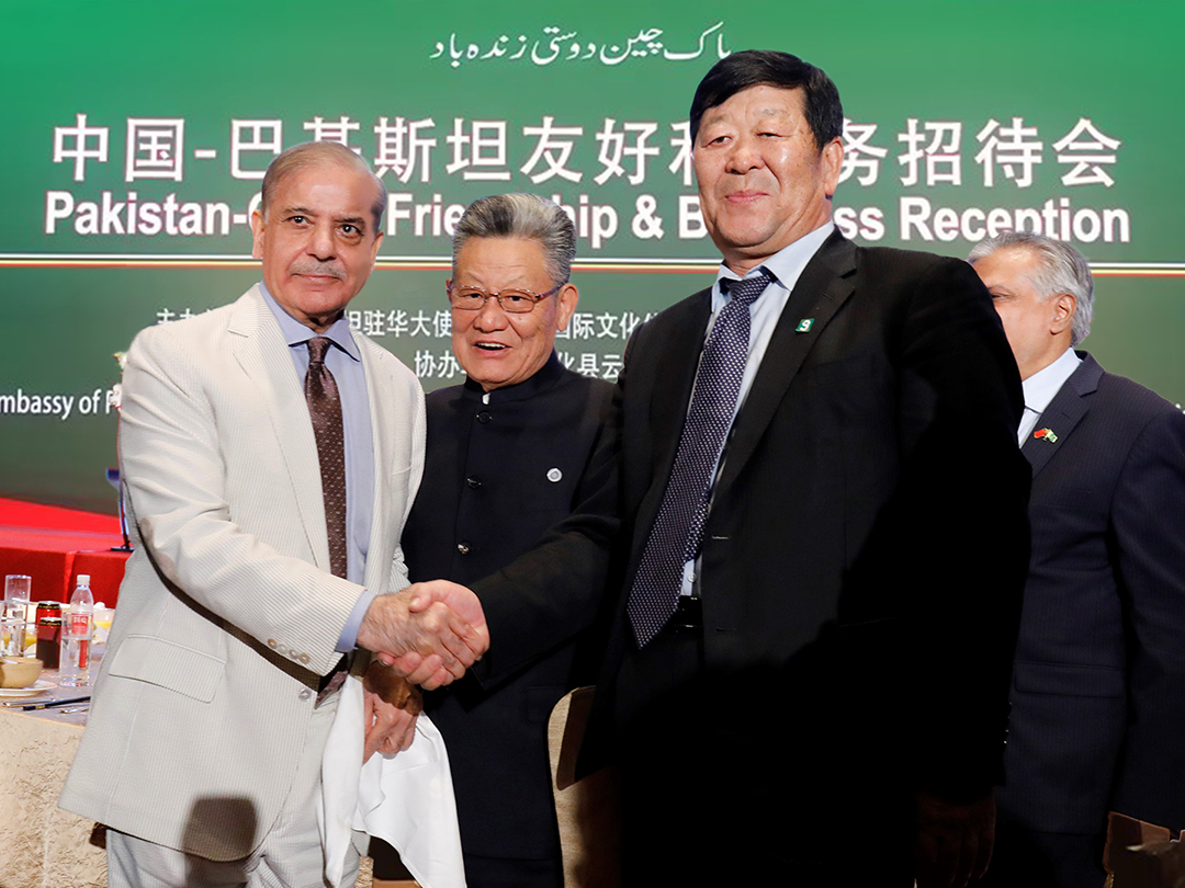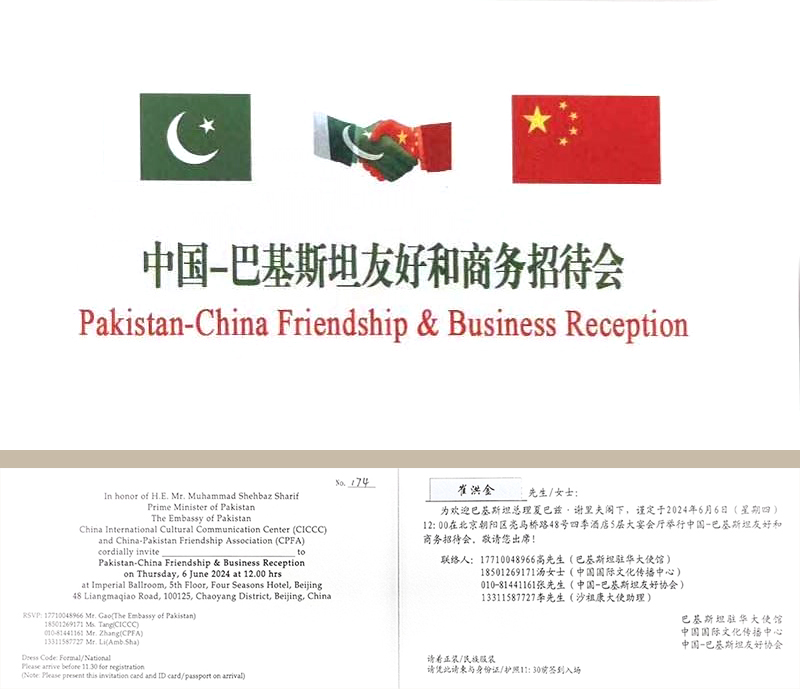 2024年6月6日,由巴基斯坦驻华使馆、中国国际文化传播中心和中国—巴基斯坦友好协会共同主办的中国—巴基斯坦友好和商务招待会在京举办。正在中国访问的巴基斯坦总理夏巴兹·谢里夫出席招待会并致辞。前联合国副秘书长沙祖康、中国人民对外友好协会副会长李希奎、中国国际文化传播中心执行主席龙宇翔,巴基斯坦副总理兼外长达尔、巴基斯坦驻华大使卡里尔·哈什米出席活动,MK(中国)一站式服务平台集团党委书记、董事长、中国爱心工作委员会副主席、中巴协会理事崔洪金,MK(中国)一站式服务平台集团总经理崔文连受邀参会。