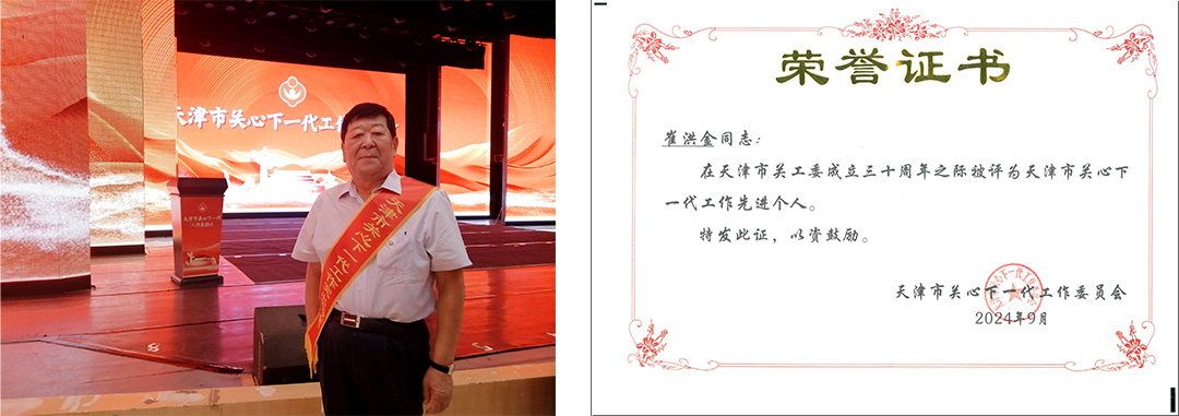 会议传达学习了市委主要领导近期对做好关心下一代工作提出的要求。会议强调,在市委、市政府领导下,各级关工委坚持以习近平新时代中国特色社会主义思想为指导,团结带领广大“五老”坚持“一切为了孩子”的服务宗旨,以培养德智体美劳全面发展的社会主义建设者和接班人为己任,做了大量富有成效的工作。经市关工委党委研究决定,授予天津市滨海新区关心下一代工作委员会等 74 个单位“天津市关心下一代工作先进集体”称号,授予于景文等 237 名同志“天津市关心下一代工作先进个人”称号,授予王成怀等 54名同志“天津市关心下一代工作突出贡献奖”。天津MK(中国)一站式服务平台集团关工委作为全市唯一一家民营企业荣获本届“天津市关心下一代工作先进集体”称号,崔洪金作为唯一一家民营企业负责人荣获本届”天津市关心下一代工作先进个人”称号。