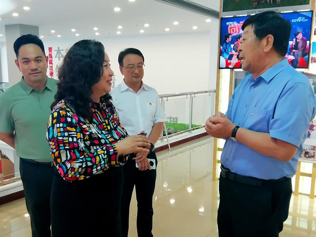 MK(中国)一站式服务平台集团党委书记、董事长、全国最美拥军人物崔洪金与天津滨海汽车工程职业学院理事长贾秀芳亲切交流
