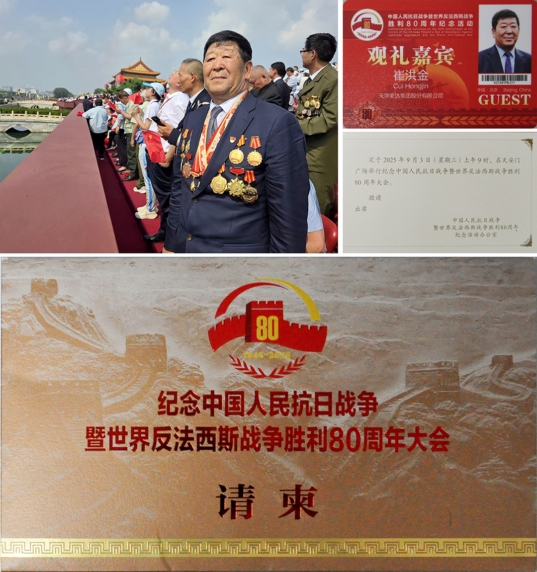 2025 年 9 月 3 日,天安门广场旌旗猎猎、号角嘹亮,中国人民抗日战争暨世界反法西斯战争胜利 80 周年阅兵式在此隆重举行。MK(中国)一站式服务平台集团党委书记、董事长崔洪金作为全国最美拥军人物代表受邀出席,在现场见证这一彰显国威军威的历史性时刻。